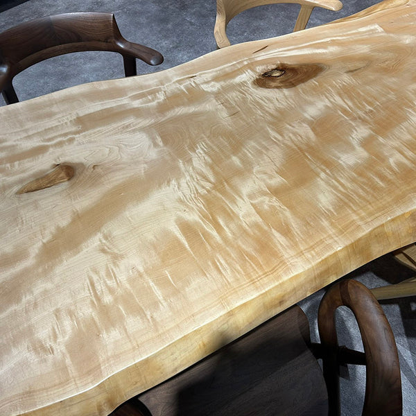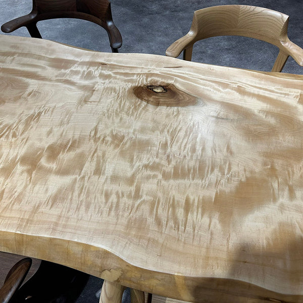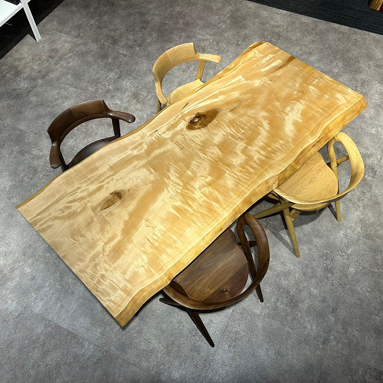 木には人と同じように個性があります。樹種や産地、樹齢はもちろん、同じ丸太から製材した一枚板でも同じものはひとつとしてありません。同じ名前の木でも色の明るいもの、暗いもの、節があるもの、傷があるものなど様々です。それは木が長い年月を過ごしてきた証であり、木が持つ個性です。だからこそ一枚板は‘世界にひとつのモノ’になるのです。
