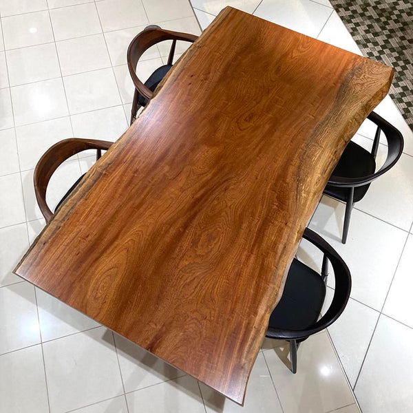 木には人と同じように個性があります。樹種や産地、樹齢はもちろん、同じ丸太から製材した一枚板でも同じものはひとつとしてありません。同じ名前の木でも色の明るいもの、暗いもの、節があるもの、傷があるものなど様々です。それは木が長い年月を過ごしてきた証であり、木が持つ個性です。だからこそ一枚板は‘世界にひとつのモノ’になるのです。