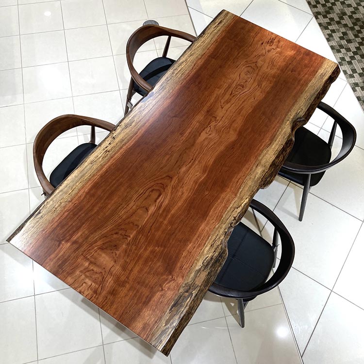 木には人と同じように個性があります。樹種や産地、樹齢はもちろん、同じ丸太から製材した一枚板でも同じものはひとつとしてありません。同じ名前の木でも色の明るいもの、暗いもの、節があるもの、傷があるものなど様々です。それは木が長い年月を過ごしてきた証であり、木が持つ個性です。だからこそ一枚板は‘世界にひとつのモノ’になるのです。