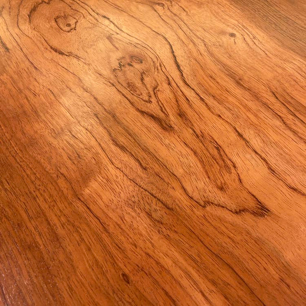 樹脂膜が水や汚れから木を保護してくれますので、日頃のお手入れは乾拭きや水拭きのみで済み、非常に楽にお使いいただける点が特徴です。特に飲食が主な用途になるダイニングテーブルでは、その効果を特に発揮します。