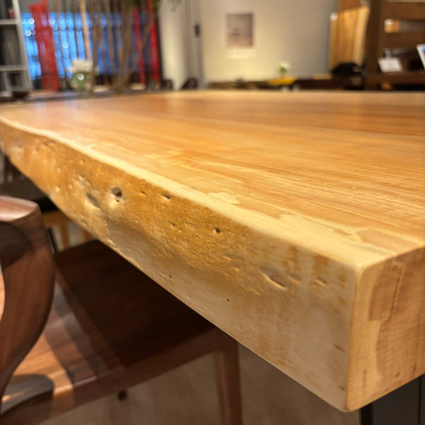 木には人と同じように個性があります。樹種や産地、樹齢はもちろん、同じ丸太から製材した一枚板でも同じものはひとつとしてありません。同じ名前の木でも色の明るいもの、暗いもの、節があるもの、傷があるものなど様々です。それは木が長い年月を過ごしてきた証であり、木が持つ個性です。だからこそ一枚板は‘世界にひとつのモノ’になるのです。