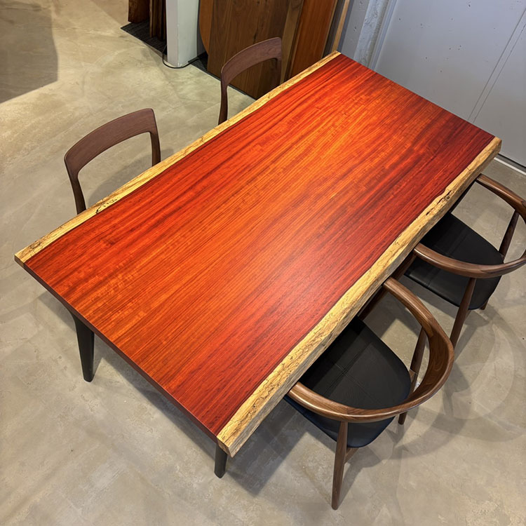 木には人と同じように個性があります。樹種や産地、樹齢はもちろん、同じ丸太から製材した一枚板でも同じものはひとつとしてありません。同じ名前の木でも色の明るいもの、暗いもの、節があるもの、傷があるものなど様々です。それは木が長い年月を過ごしてきた証であり、木が持つ個性です。だからこそ一枚板は‘世界にひとつのモノ’になるのです。