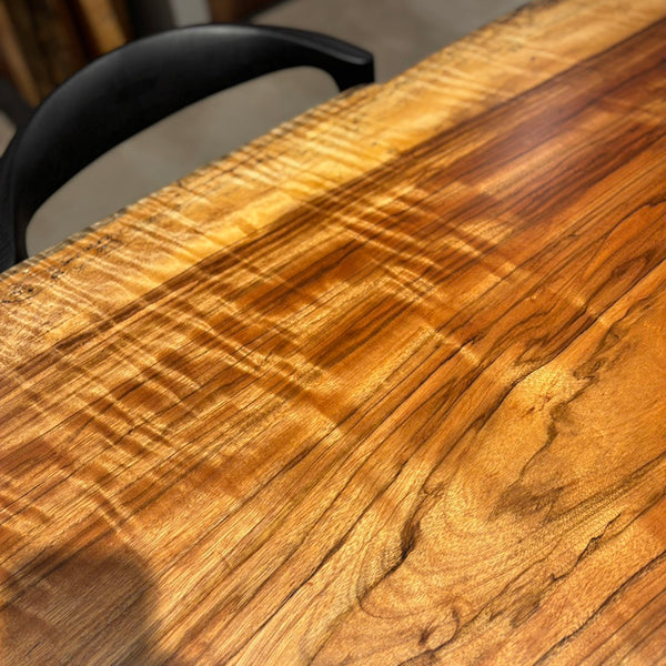 木には人と同じように個性があります。樹種や産地、樹齢はもちろん、同じ丸太から製材した一枚板でも同じものはひとつとしてありません。同じ名前の木でも色の明るいもの、暗いもの、節があるもの、傷があるものなど様々です。それは木が長い年月を過ごしてきた証であり、木が持つ個性です。だからこそ一枚板は‘世界にひとつのモノ’になるのです。