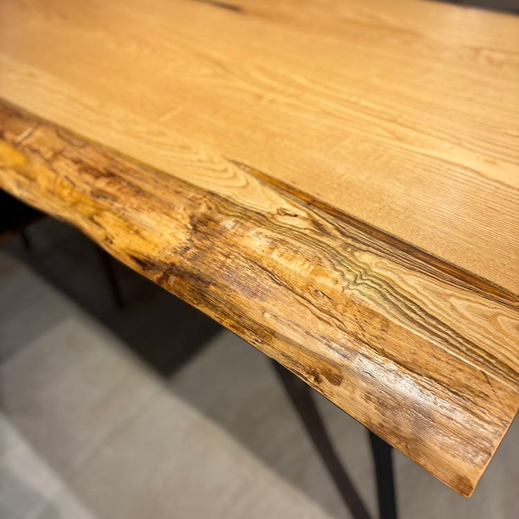 木には人と同じように個性があります。樹種や産地、樹齢はもちろん、同じ丸太から製材した一枚板でも同じものはひとつとしてありません。同じ名前の木でも色の明るいもの、暗いもの、節があるもの、傷があるものなど様々です。それは木が長い年月を過ごしてきた証であり、木が持つ個性です。だからこそ一枚板は‘世界にひとつのモノ’になるのです。