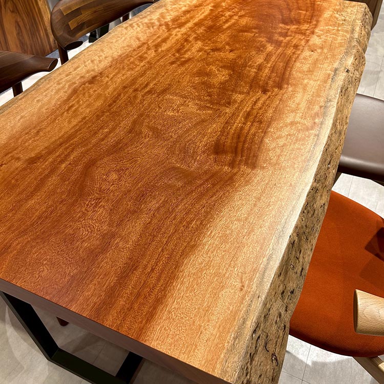 木には人と同じように個性があります。樹種や産地、樹齢はもちろん、同じ丸太から製材した一枚板でも同じものはひとつとしてありません。同じ名前の木でも色の明るいもの、暗いもの、節があるもの、傷があるものなど様々です。それは木が長い年月を過ごしてきた証であり、木が持つ個性です。だからこそ一枚板は‘世界にひとつのモノ’になるのです。