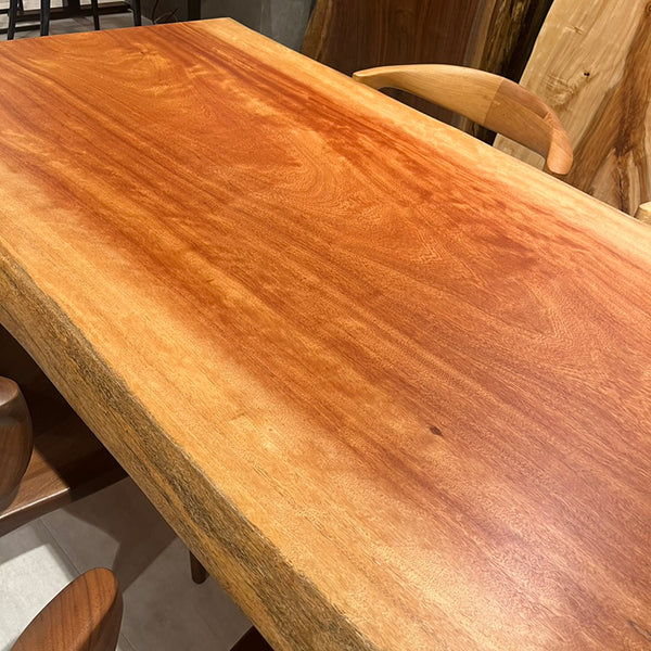 木には人と同じように個性があります。樹種や産地、樹齢はもちろん、同じ丸太から製材した一枚板でも同じものはひとつとしてありません。同じ名前の木でも色の明るいもの、暗いもの、節があるもの、傷があるものなど様々です。それは木が長い年月を過ごしてきた証であり、木が持つ個性です。だからこそ一枚板は‘世界にひとつのモノ’になるのです。