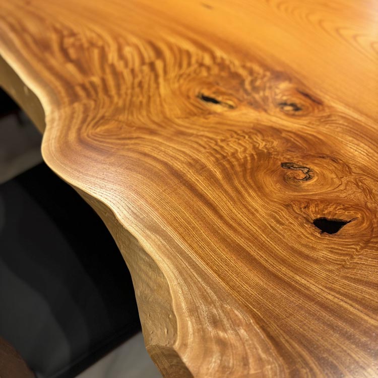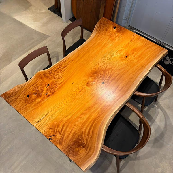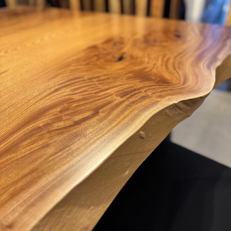 木には人と同じように個性があります。樹種や産地、樹齢はもちろん、同じ丸太から製材した一枚板でも同じものはひとつとしてありません。同じ名前の木でも色の明るいもの、暗いもの、節があるもの、傷があるものなど様々です。それは木が長い年月を過ごしてきた証であり、木が持つ個性です。だからこそ一枚板は‘世界にひとつのモノ’になるのです。