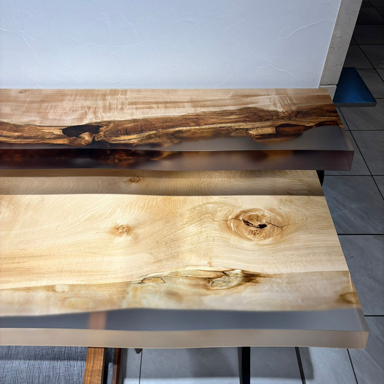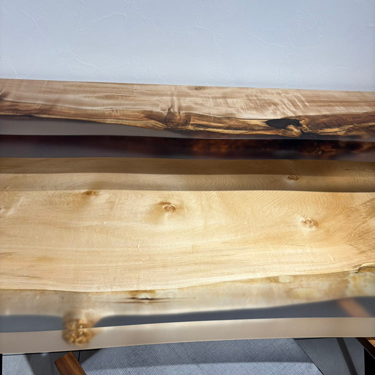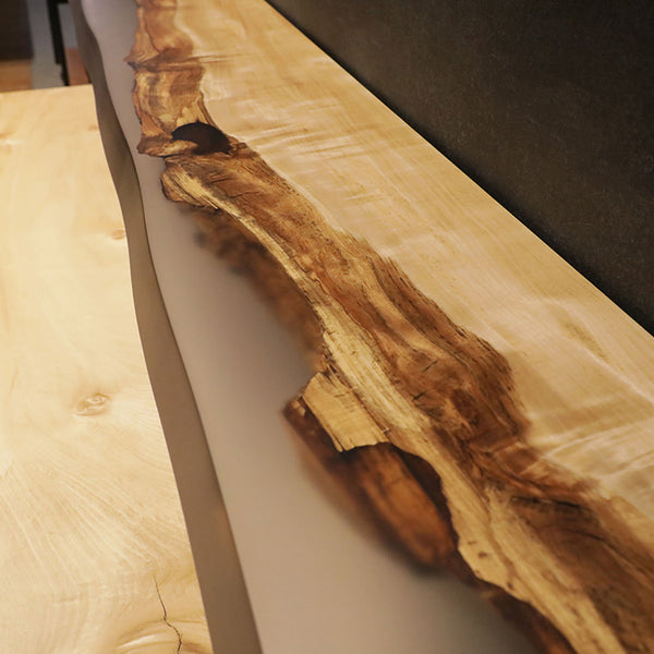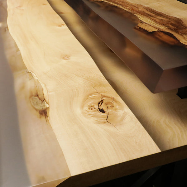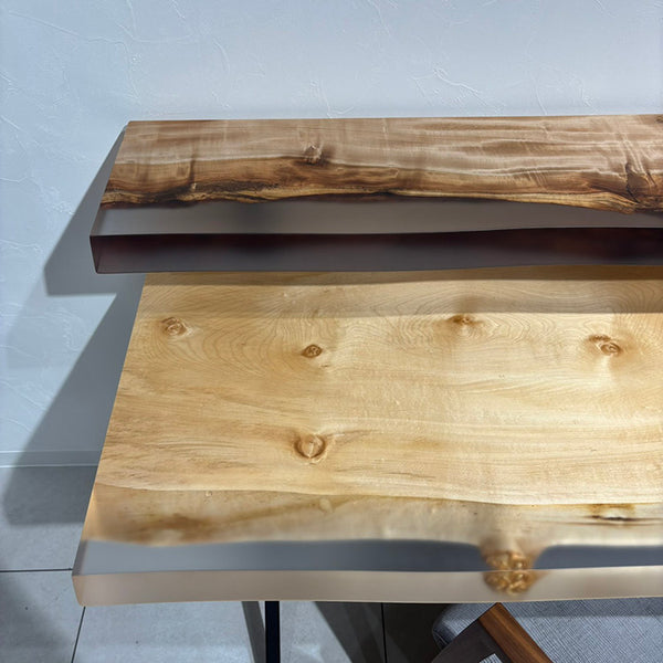 木には人と同じように個性があります。樹種や産地、樹齢はもちろん、同じ丸太から製材した一枚板でも同じものはひとつとしてありません。同じ名前の木でも色の明るいもの、暗いもの、節があるもの、傷があるものなど様々です。それは木が長い年月を過ごしてきた証であり、木が持つ個性です。だからこそ一枚板は‘世界にひとつのモノ’になるのです。