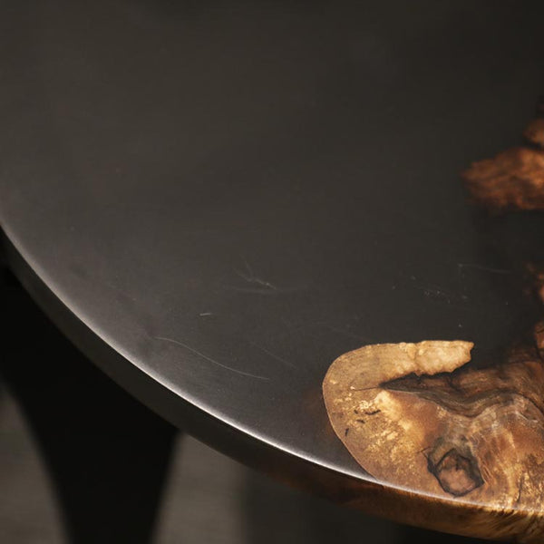 樹脂膜が水や汚れから木を保護してくれますので、日頃のお手入れは乾拭きや水拭きのみで済み、非常に楽にお使いいただける点が特徴です。特に飲食が主な用途になるダイニングテーブルでは、その効果を特に発揮します。