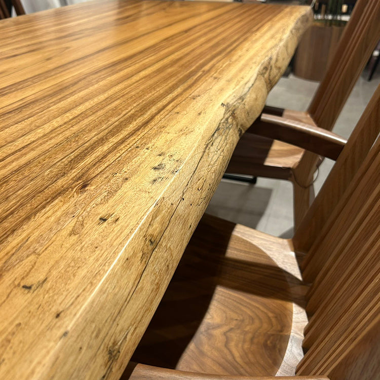 木には人と同じように個性があります。樹種や産地、樹齢はもちろん、同じ丸太から製材した一枚板でも同じものはひとつとしてありません。同じ名前の木でも色の明るいもの、暗いもの、節があるもの、傷があるものなど様々です。それは木が長い年月を過ごしてきた証であり、木が持つ個性です。だからこそ一枚板は‘世界にひとつのモノ’になるのです。