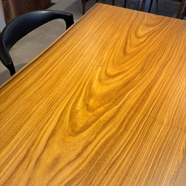 樹脂膜が水や汚れから木を保護してくれますので、日頃のお手入れは乾拭きや水拭きのみで済み、非常に楽にお使いいただける点が特徴です。特に飲食が主な用途になるダイニングテーブルでは、その効果を特に発揮します。