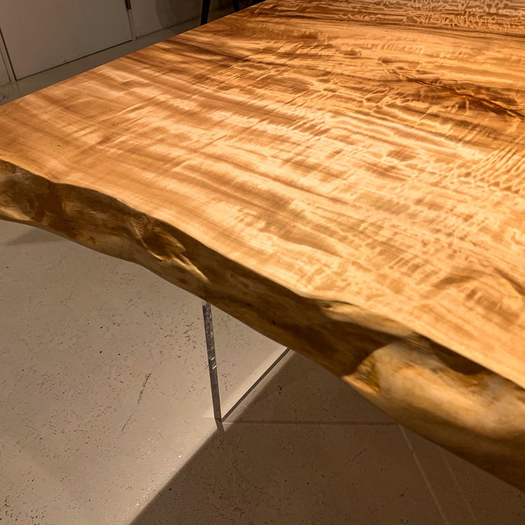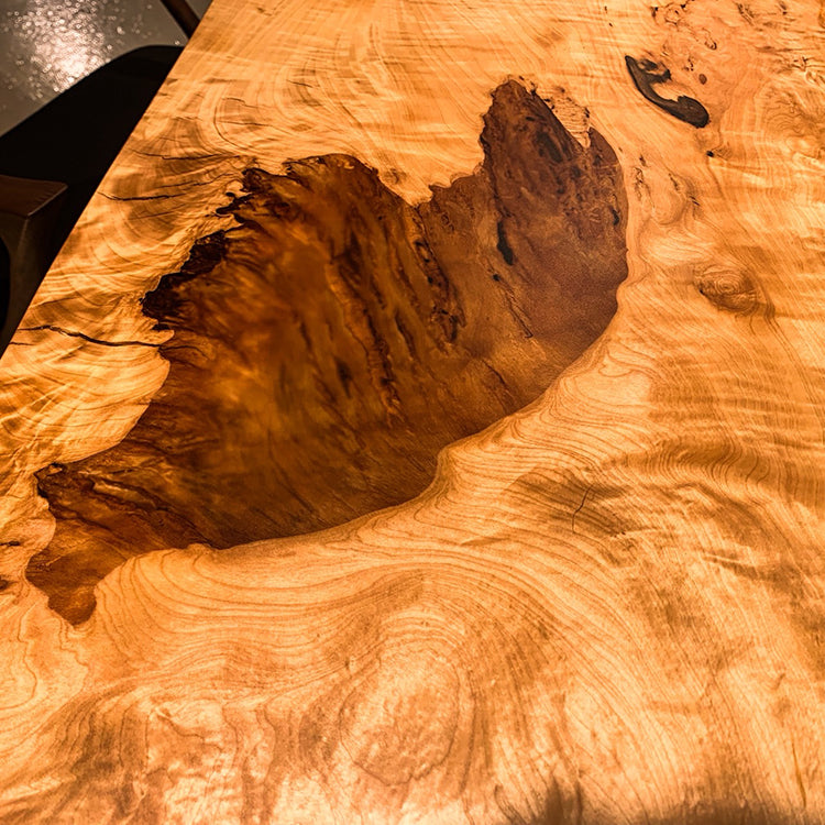 木には人と同じように個性があります。樹種や産地、樹齢はもちろん、同じ丸太から製材した一枚板でも同じものはひとつとしてありません。同じ名前の木でも色の明るいもの、暗いもの、節があるもの、傷があるものなど様々です。それは木が長い年月を過ごしてきた証であり、木が持つ個性です。だからこそ一枚板は‘世界にひとつのモノ’になるのです。