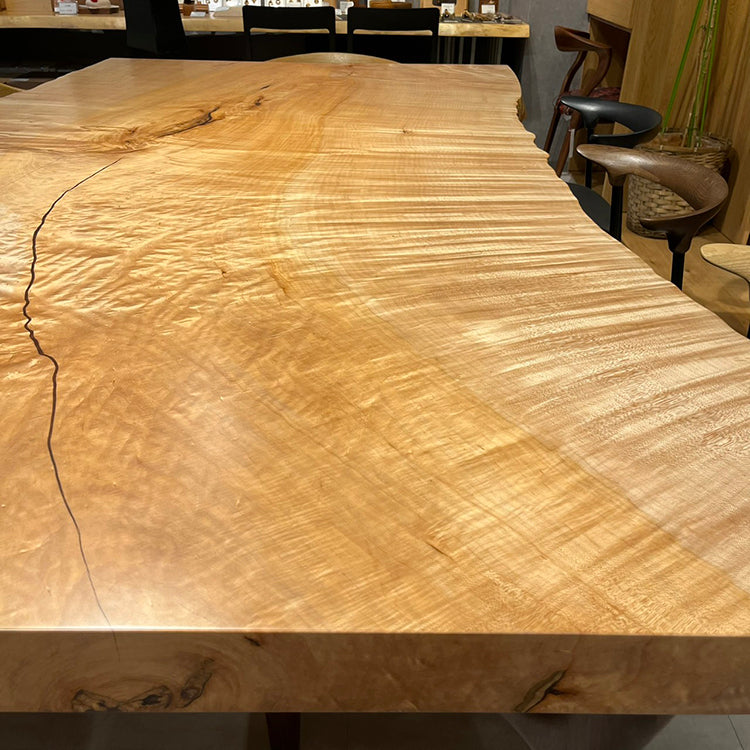 木には人と同じように個性があります。樹種や産地、樹齢はもちろん、同じ丸太から製材した一枚板でも同じものはひとつとしてありません。同じ名前の木でも色の明るいもの、暗いもの、節があるもの、傷があるものなど様々です。それは木が長い年月を過ごしてきた証であり、木が持つ個性です。だからこそ一枚板は‘世界にひとつのモノ’になるのです。