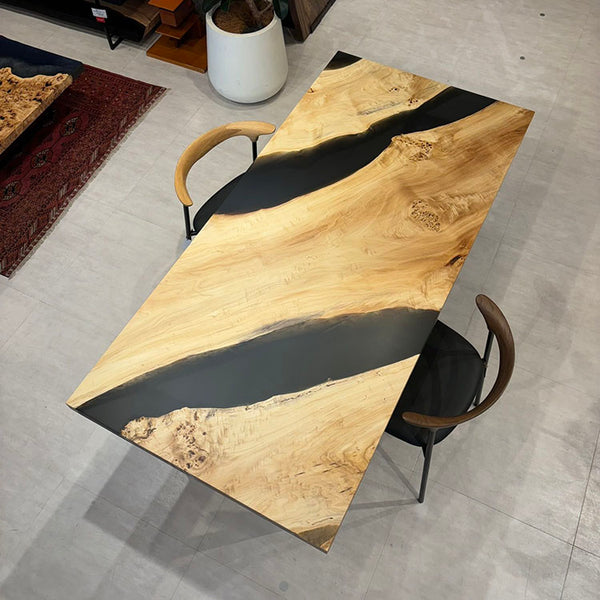 樹脂膜が水や汚れから木を保護してくれますので、日頃のお手入れは乾拭きや水拭きのみで済み、非常に楽にお使いいただける点が特徴です。特に飲食が主な用途になるダイニングテーブルでは、その効果を特に発揮します。