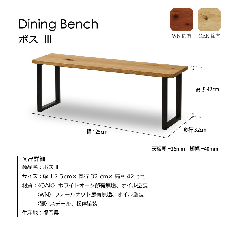 商品情報 | 無垢材天板とスチール脚を使用したベンチ |