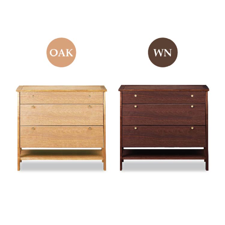 商品情報 | 真鍮取っ手を用いた可愛らしいリビングチェストシリーズ ガラス天板を用いたコレクションボードタイプと通常のチェストの2種類あります。 |