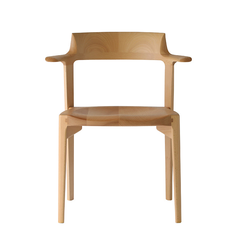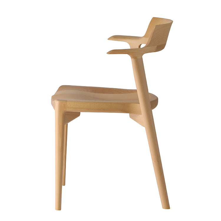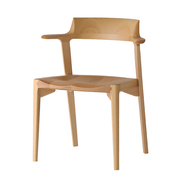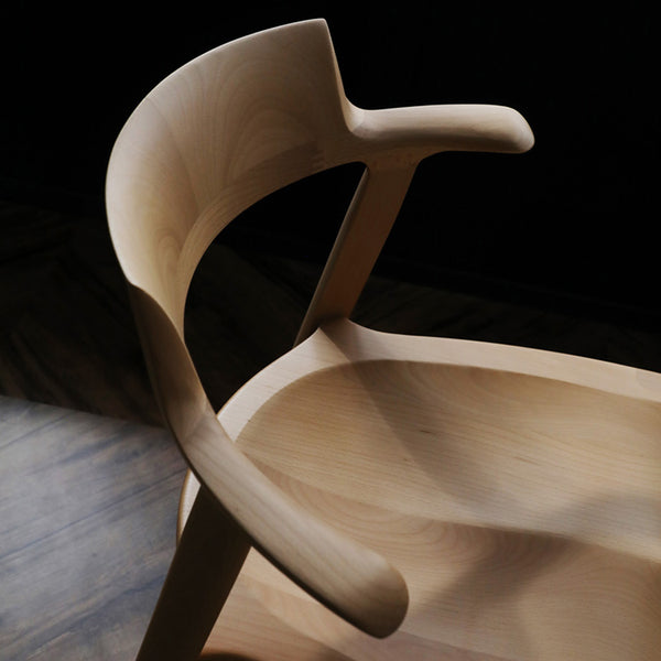 曲木や張地にはないフィット感や温かみを生むために、3次曲面で削り出された背もたれや座面は、