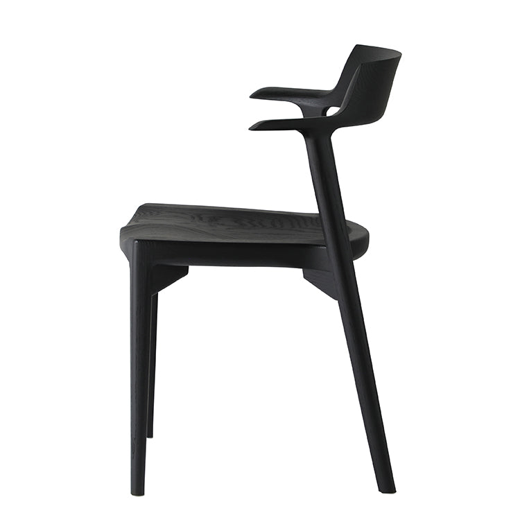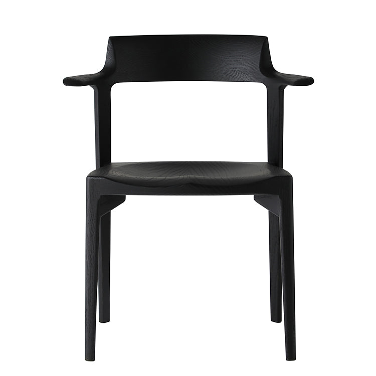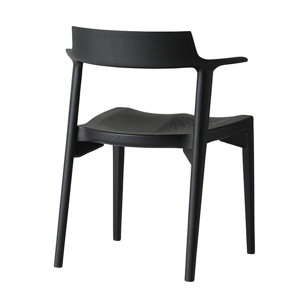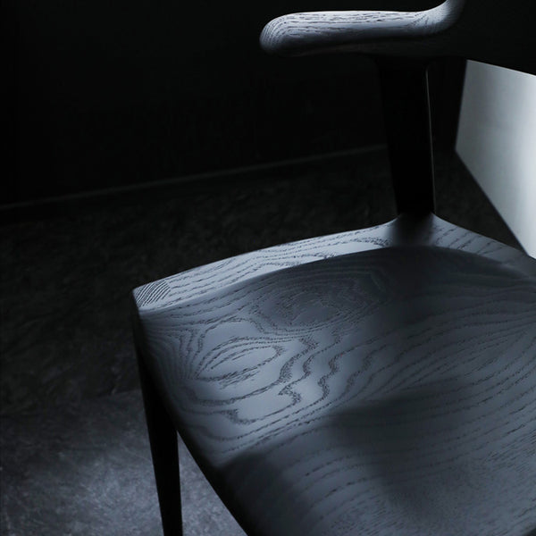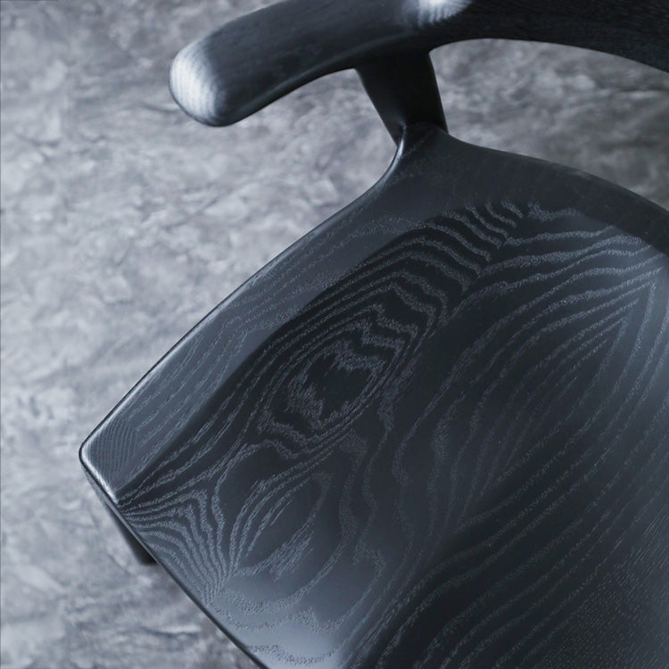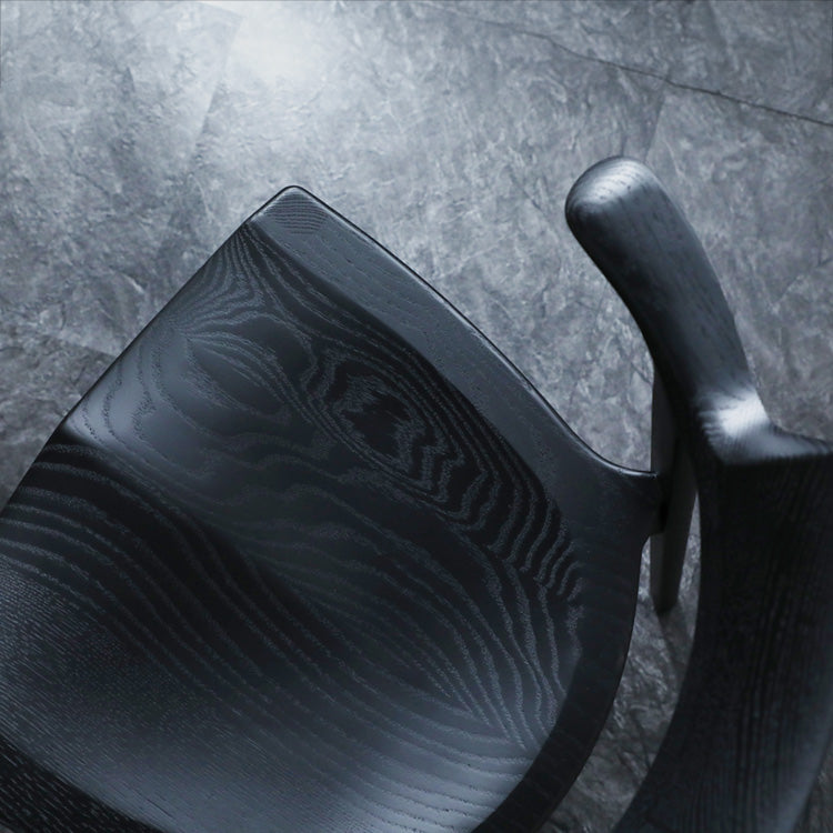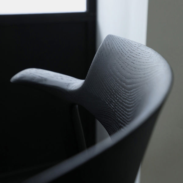 曲木や張地にはないフィット感や温かみを生むために、3次曲面で削り出された背もたれや座面は、
