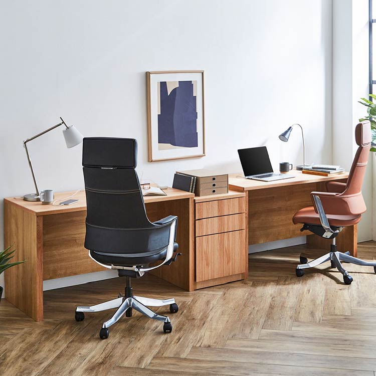 | 商品情報 | オフィスユースにも対応できる天然木の突板を使用したデスク。 |