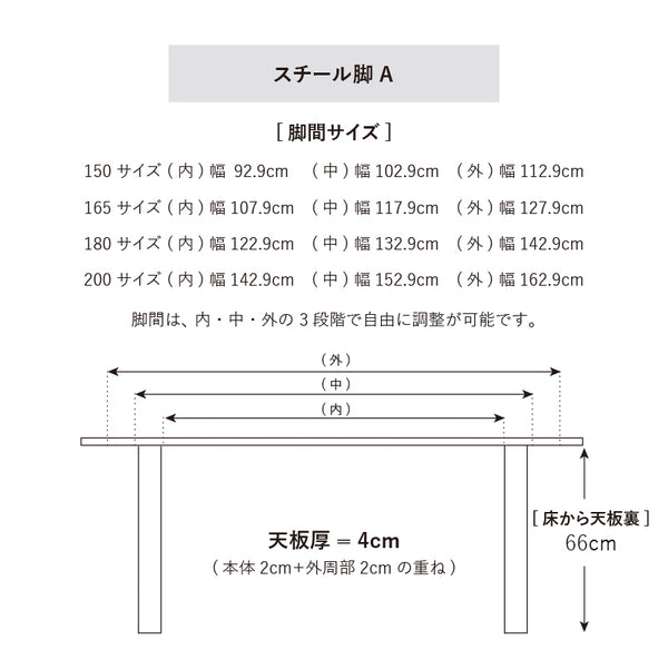 脚高詳細 | 天板20mmの2枚重ねのため、脚は20mm入り込んでいます |