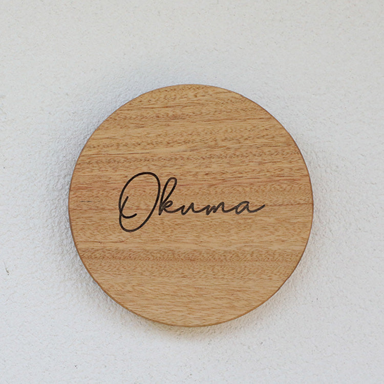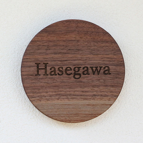 円形表札(直径15 ×厚み2.5cm)のデザインは全4種類、木の種類は6種類からお選びいただけます。