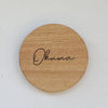 木の持つ素材や風合いをそのままに、文字はレーザー彫刻による焼き色の自然な色味で仕上がります。