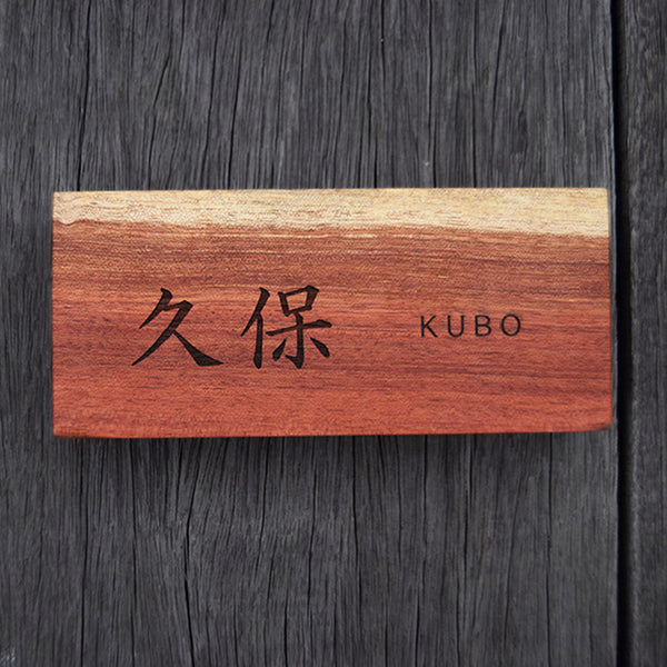 個性的な木の表情と質感・杢目が引き立つようシンプルな仕上げにこだわった世界にひとつの表札です。