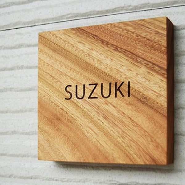 個性的な木の表情と質感・杢目が引き立つようシンプルな仕上げにこだわった世界にひとつの表札です。