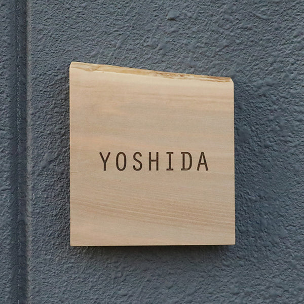 個性的な木の表情と質感・杢目が引き立つようシンプルな仕上げにこだわった世界にひとつの表札です。