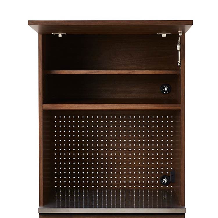 商品情報 | 上台は跳ね上げ式フラップ扉。節有り突板を使用。上台奥行きが深く収納力が高い。OP部分モイス装備。天板は燕三条のステンレスを使用。 |
