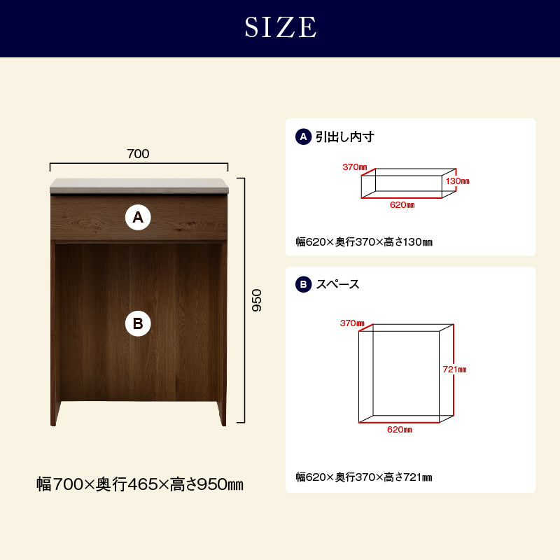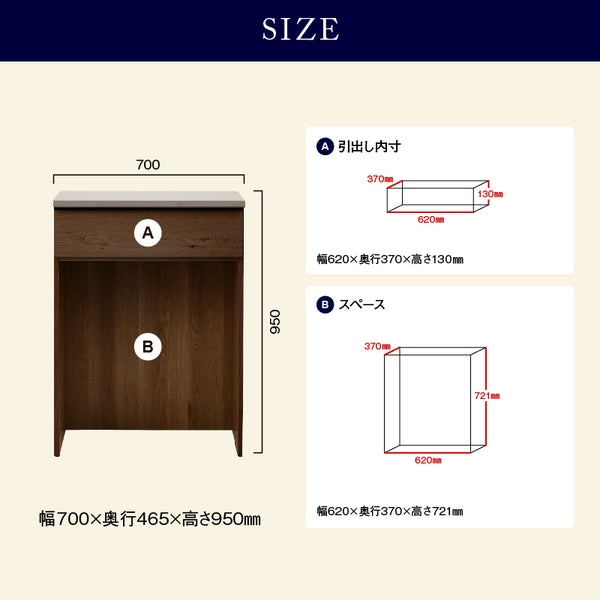 天板:幅72cm×奥行50cm×高さ5cm 下台:幅74cm×奥行50cm×高さ95cm |