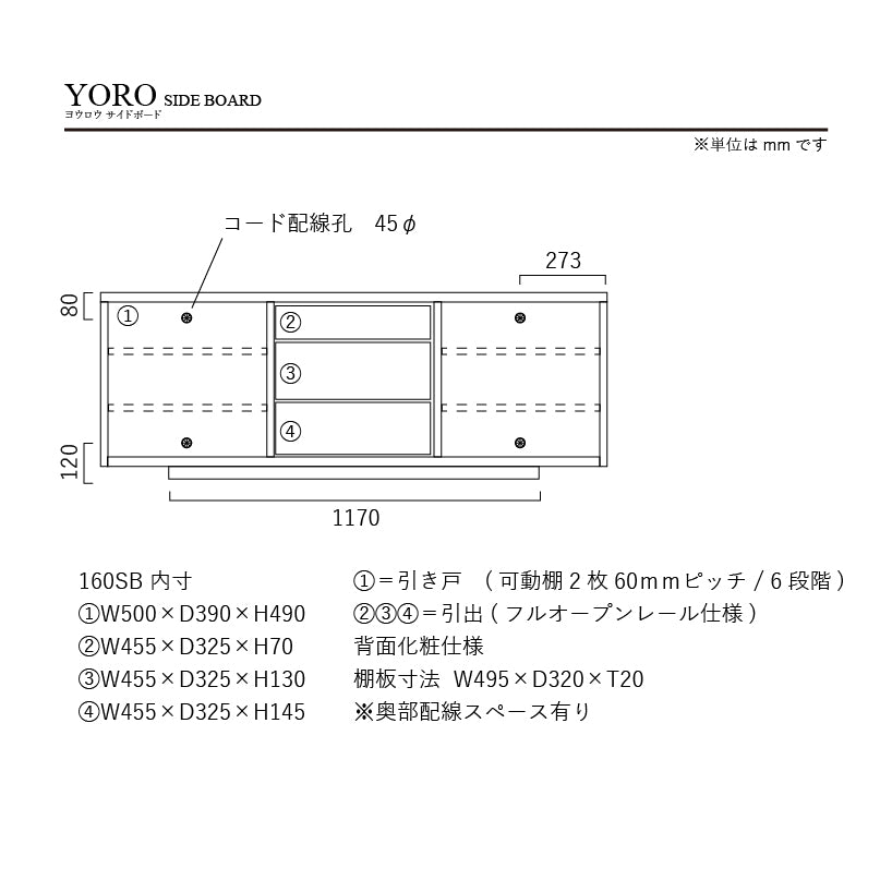 商品サイズ | 幅160.0 × 奥行44.5 × 高さ59.0cm |