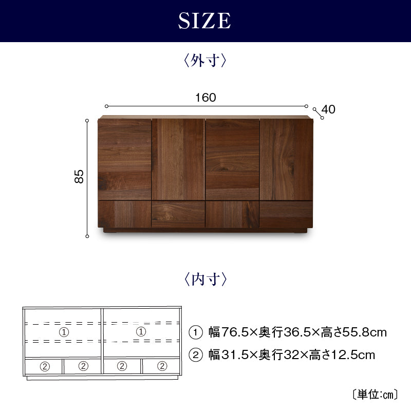 | 商品サイズ | 幅160.0 × 奥行40.0 × 高さ85.0cm |