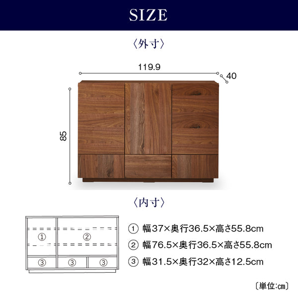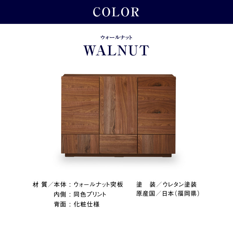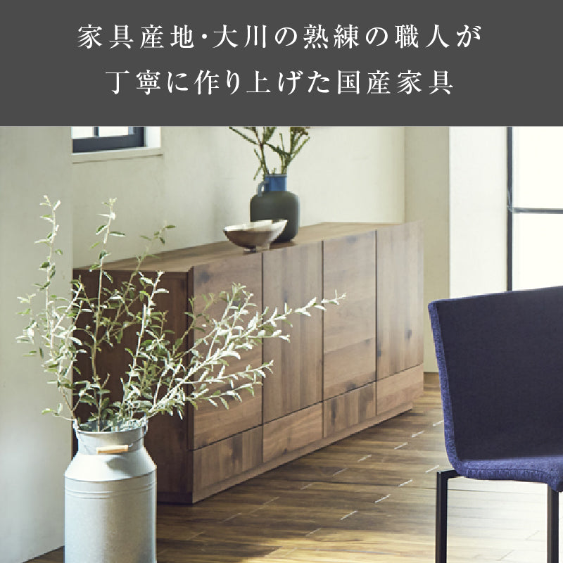| 商品情報 | 節有りの突板を使用したサイドボード。使うスタイルにあわせて高さが選べます。 |