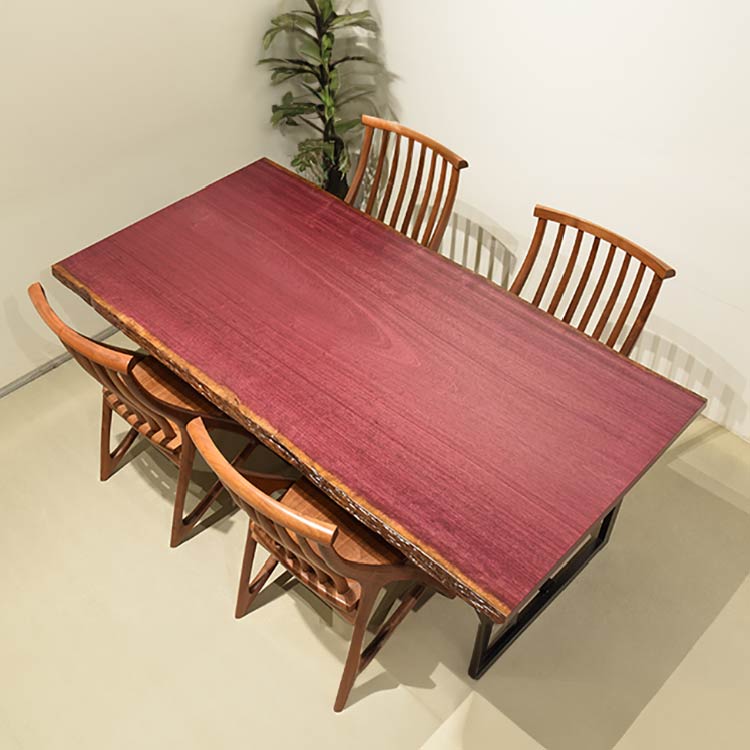 木には人と同じように個性があります。樹種や産地、樹齢はもちろん、同じ丸太から製材した一枚板でも同じものはひとつとしてありません。同じ名前の木でも色の明るいもの、暗いもの、節があるもの、傷があるものなど様々です。それは木が長い年月を過ごしてきた証であり、木が持つ個性です。だからこそ一枚板は‘世界にひとつのモノ’になるのです。