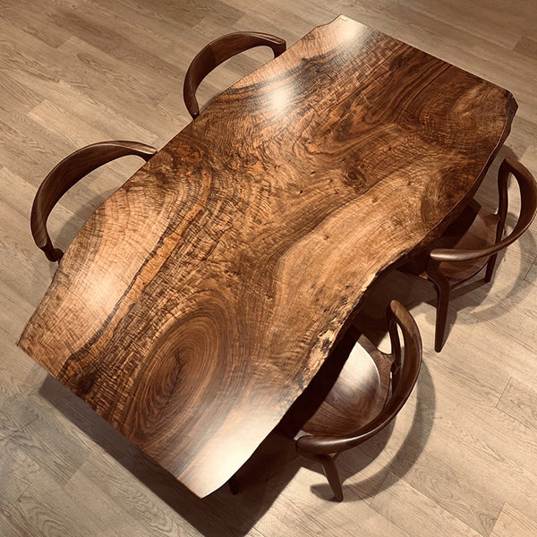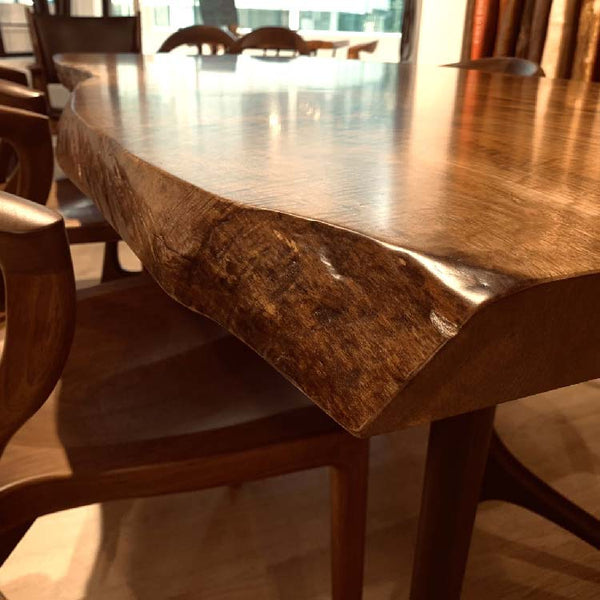 木には人と同じように個性があります。樹種や産地、樹齢はもちろん、同じ丸太から製材した一枚板でも同じものはひとつとしてありません。同じ名前の木でも色の明るいもの、暗いもの、節があるもの、傷があるものなど様々です。それは木が長い年月を過ごしてきた証であり、木が持つ個性です。だからこそ一枚板は‘世界にひとつのモノ’になるのです。