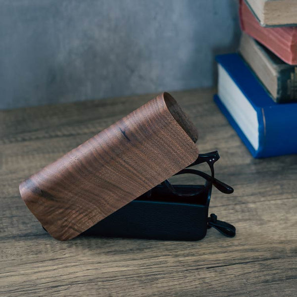 シンプルな造形で、クルミの木目の美しさが際立つハンサムなメガネケースです。