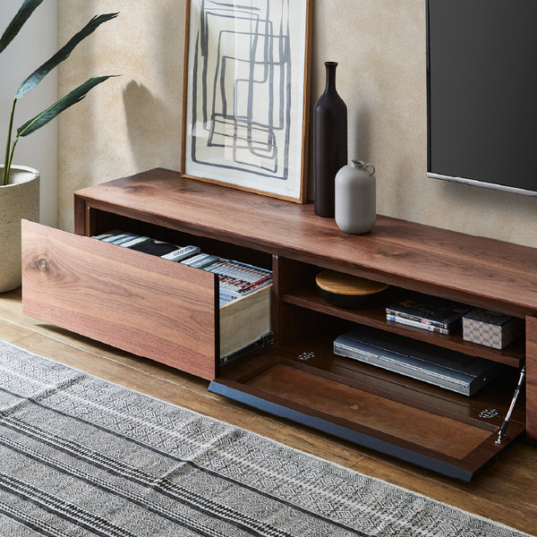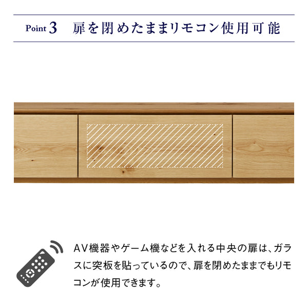 | 商品情報 | 節有りの突板を使用したTVボード 突板ガラス扉仕様のためリモコン通します |