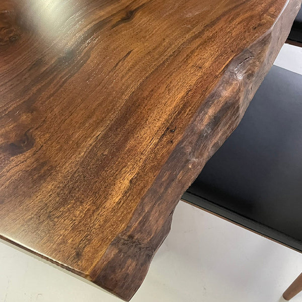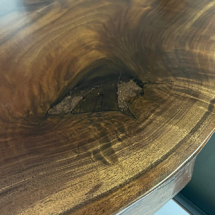 木には人と同じように個性があります。樹種や産地、樹齢はもちろん、同じ丸太から製材した一枚板でも同じものはひとつとしてありません。同じ名前の木でも色の明るいもの、暗いもの、節があるもの、傷があるものなど様々です。それは木が長い年月を過ごしてきた証であり、木が持つ個性です。だからこそ一枚板は‘世界にひとつのモノ’になるのです。