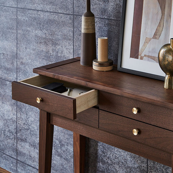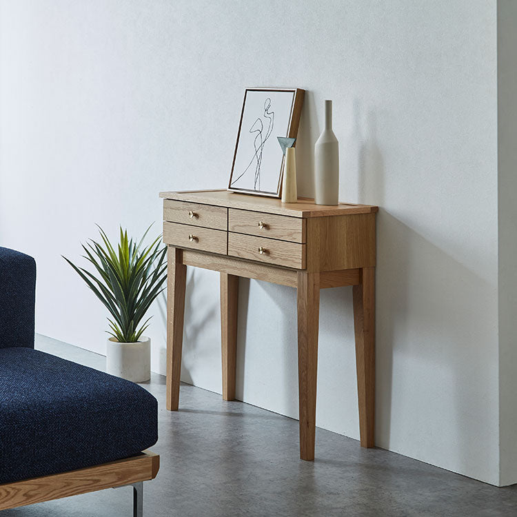 | 商品情報 | コーニスシリーズと同じ真鍮取手、天板構造を採用したコンソールテーブルです。リビング、玄関周りにおいて可愛らしいサイズ感となるようにしています。 |