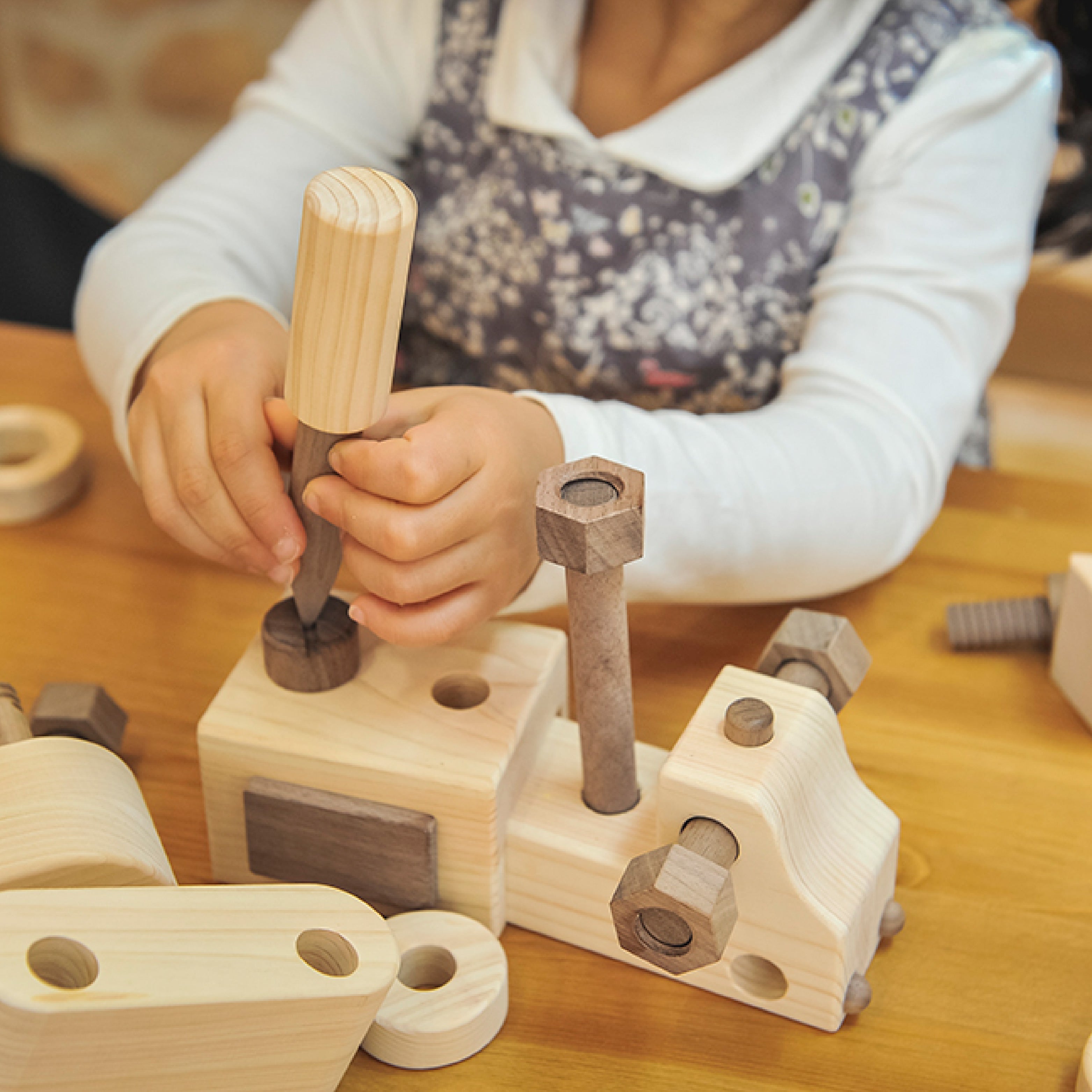 木材に半世紀以上携わってきたプロたちの想いを形にした安心安全な国産ヒノキをたっぷり使ったおもちゃです。