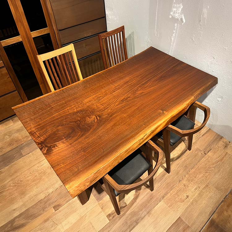 木には人と同じように個性があります。樹種や産地、樹齢はもちろん、同じ丸太から製材した一枚板でも同じものはひとつとしてありません。同じ名前の木でも色の明るいもの、暗いもの、節があるもの、傷があるものなど様々です。それは木が長い年月を過ごしてきた証であり、木が持つ個性です。だからこそ一枚板は‘世界にひとつのモノ’になるのです。