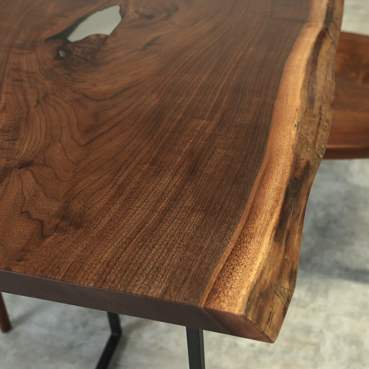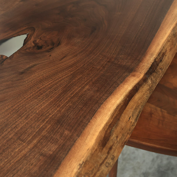 木には人と同じように個性があります。樹種や産地、樹齢はもちろん、同じ丸太から製材した一枚板でも同じものはひとつとしてありません。同じ名前の木でも色の明るいもの、暗いもの、節があるもの、傷があるものなど様々です。それは木が長い年月を過ごしてきた証であり、木が持つ個性です。だからこそ一枚板は‘世界にひとつのモノ’になるのです。