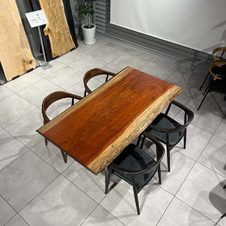 木には人と同じように個性があります。樹種や産地、樹齢はもちろん、同じ丸太から製材した一枚板でも同じものはひとつとしてありません。同じ名前の木でも色の明るいもの、暗いもの、節があるもの、傷があるものなど様々です。それは木が長い年月を過ごしてきた証であり、木が持つ個性です。だからこそ一枚板は‘世界にひとつのモノ’になるのです。