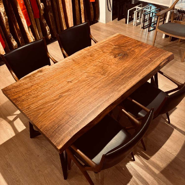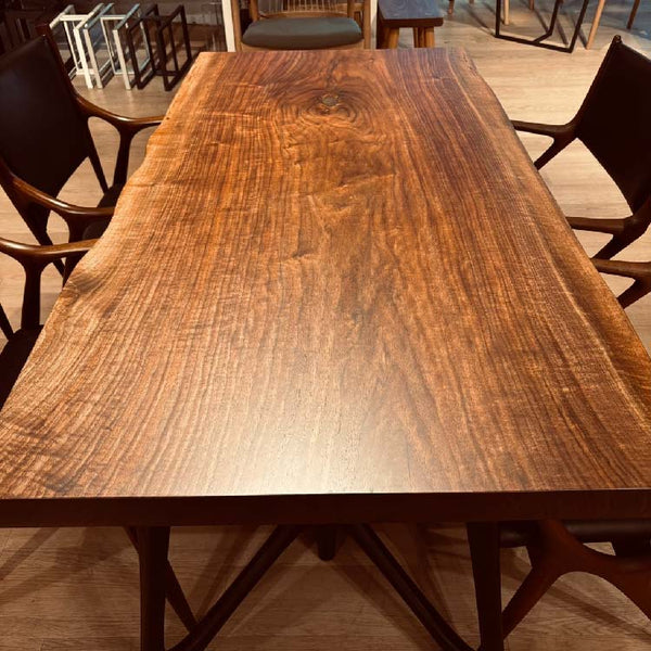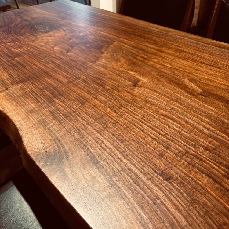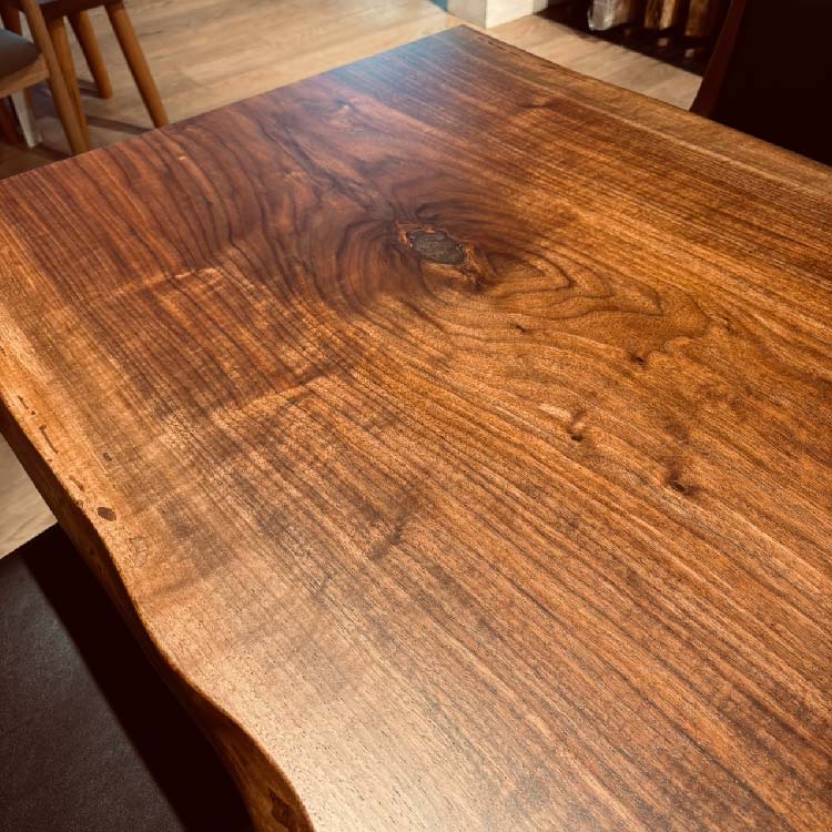 木には人と同じように個性があります。樹種や産地、樹齢はもちろん、同じ丸太から製材した一枚板でも同じものはひとつとしてありません。同じ名前の木でも色の明るいもの、暗いもの、節があるもの、傷があるものなど様々です。それは木が長い年月を過ごしてきた証であり、木が持つ個性です。だからこそ一枚板は‘世界にひとつのモノ’になるのです。