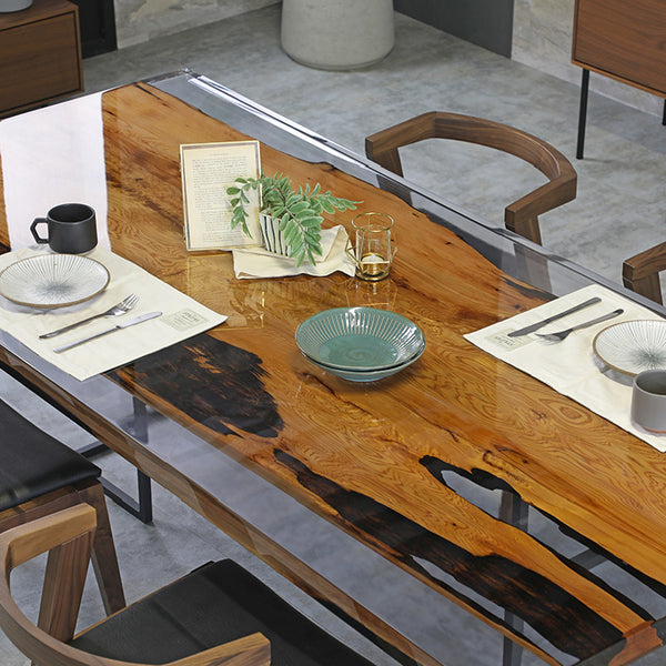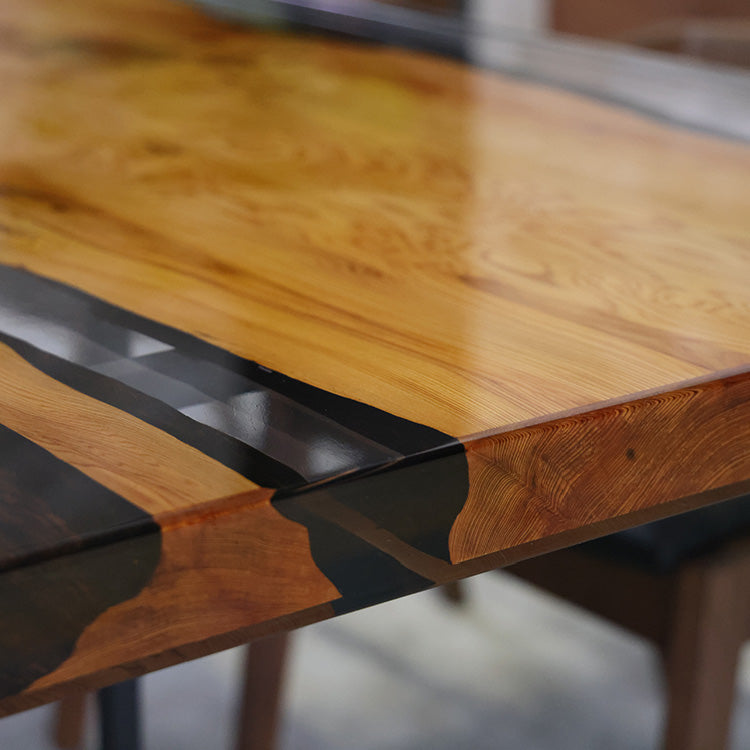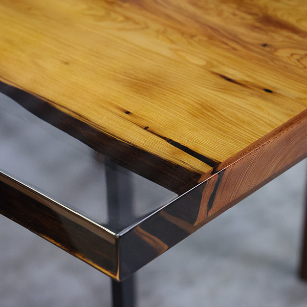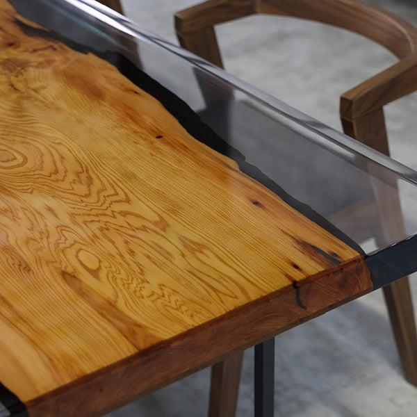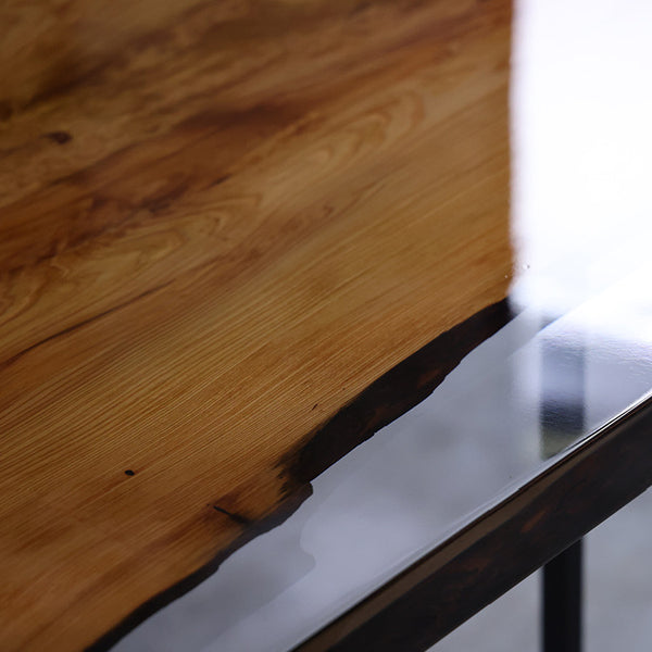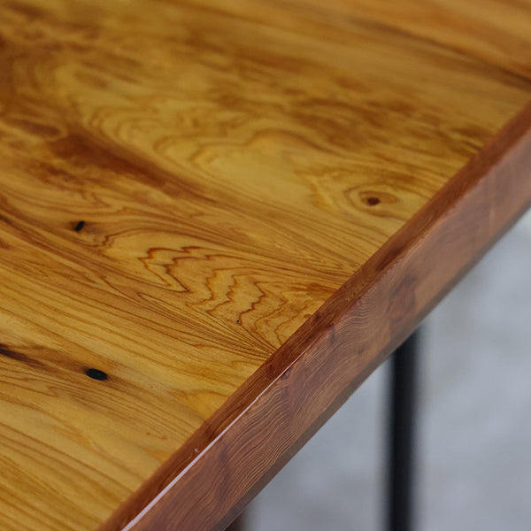 樹脂膜が水や汚れから木を保護してくれますので、日頃のお手入れは乾拭きや水拭きのみで済み、非常に楽にお使いいただける点が特徴です。特に飲食が主な用途になるダイニングテーブルでは、その効果を特に発揮します。