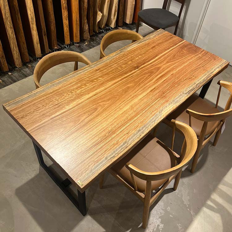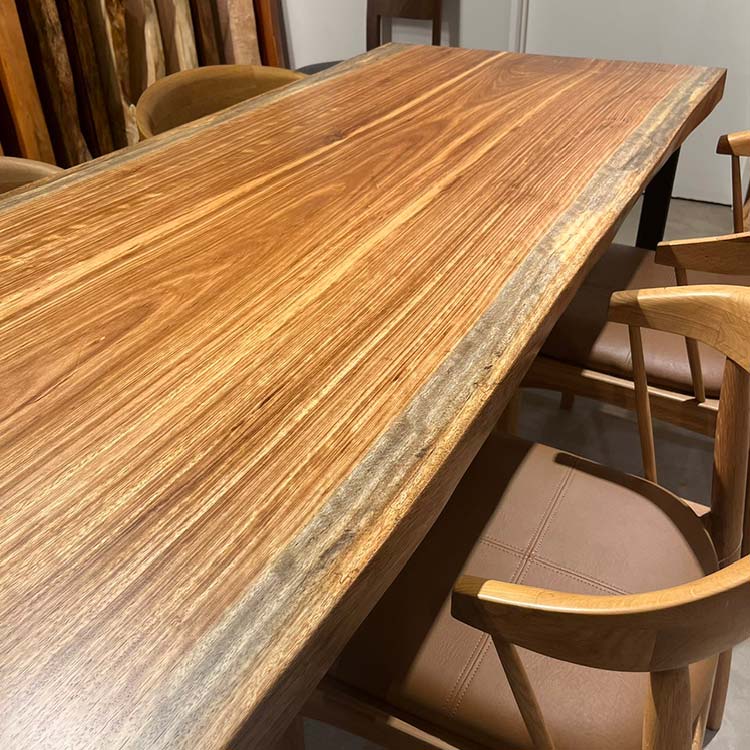 木には人と同じように個性があります。樹種や産地、樹齢はもちろん、同じ丸太から製材した一枚板でも同じものはひとつとしてありません。同じ名前の木でも色の明るいもの、暗いもの、節があるもの、傷があるものなど様々です。それは木が長い年月を過ごしてきた証であり、木が持つ個性です。だからこそ一枚板は‘世界にひとつのモノ’になるのです。