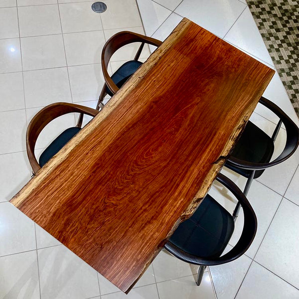 木には人と同じように個性があります。樹種や産地、樹齢はもちろん、同じ丸太から製材した一枚板でも同じものはひとつとしてありません。同じ名前の木でも色の明るいもの、暗いもの、節があるもの、傷があるものなど様々です。それは木が長い年月を過ごしてきた証であり、木が持つ個性です。だからこそ一枚板は‘世界にひとつのモノ’になるのです。