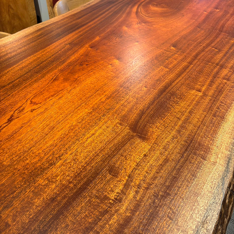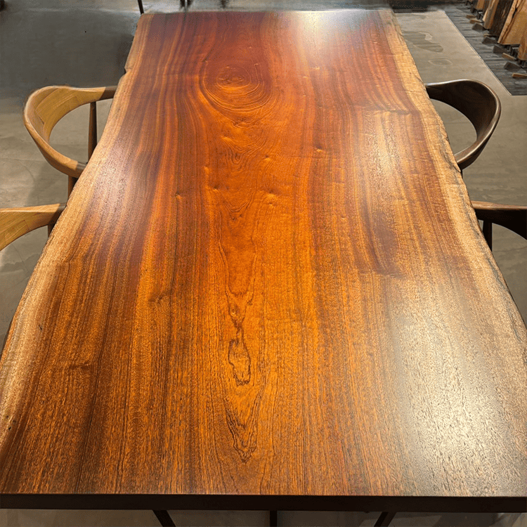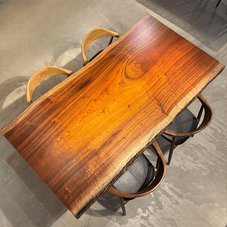 木には人と同じように個性があります。樹種や産地、樹齢はもちろん、同じ丸太から製材した一枚板でも同じものはひとつとしてありません。同じ名前の木でも色の明るいもの、暗いもの、節があるもの、傷があるものなど様々です。それは木が長い年月を過ごしてきた証であり、木が持つ個性です。だからこそ一枚板は‘世界にひとつのモノ’になるのです。