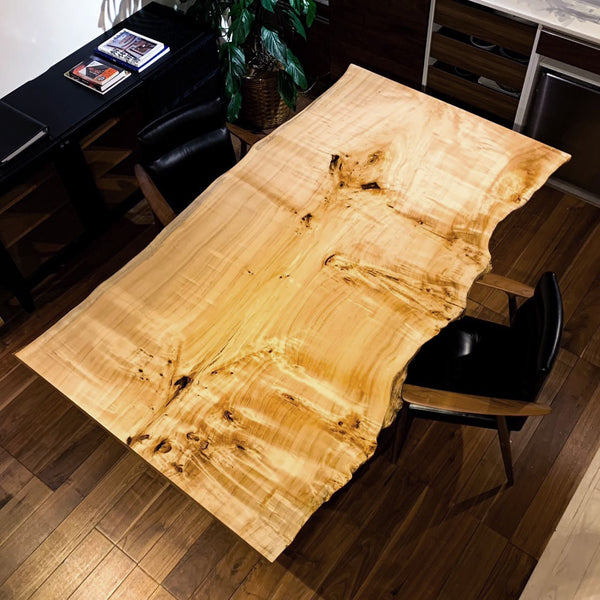 木には人と同じように個性があります。樹種や産地、樹齢はもちろん、同じ丸太から製材した一枚板でも同じものはひとつとしてありません。同じ名前の木でも色の明るいもの、暗いもの、節があるもの、傷があるものなど様々です。それは木が長い年月を過ごしてきた証であり、木が持つ個性です。だからこそ一枚板は‘世界にひとつのモノ’になるのです。